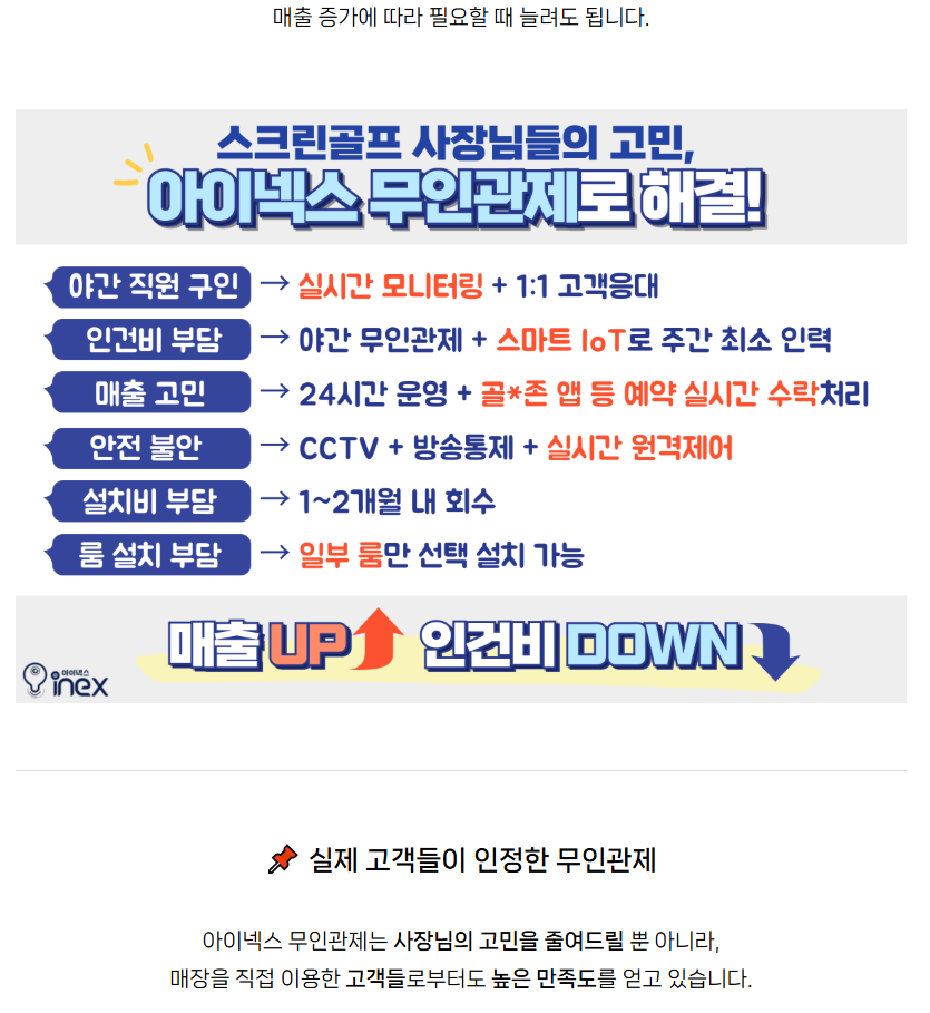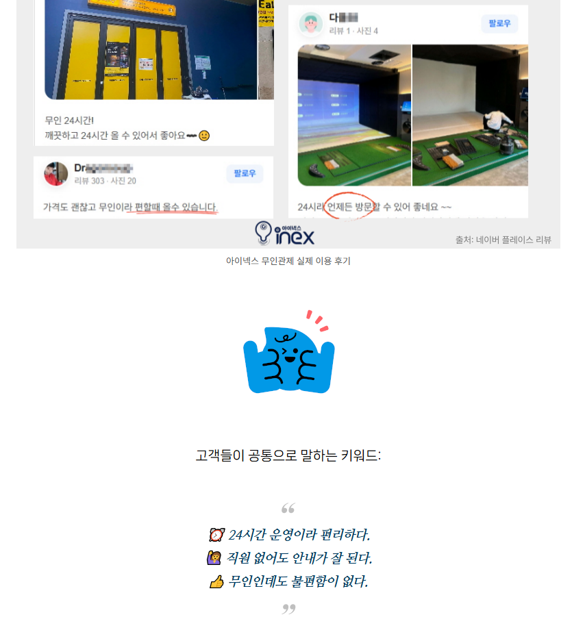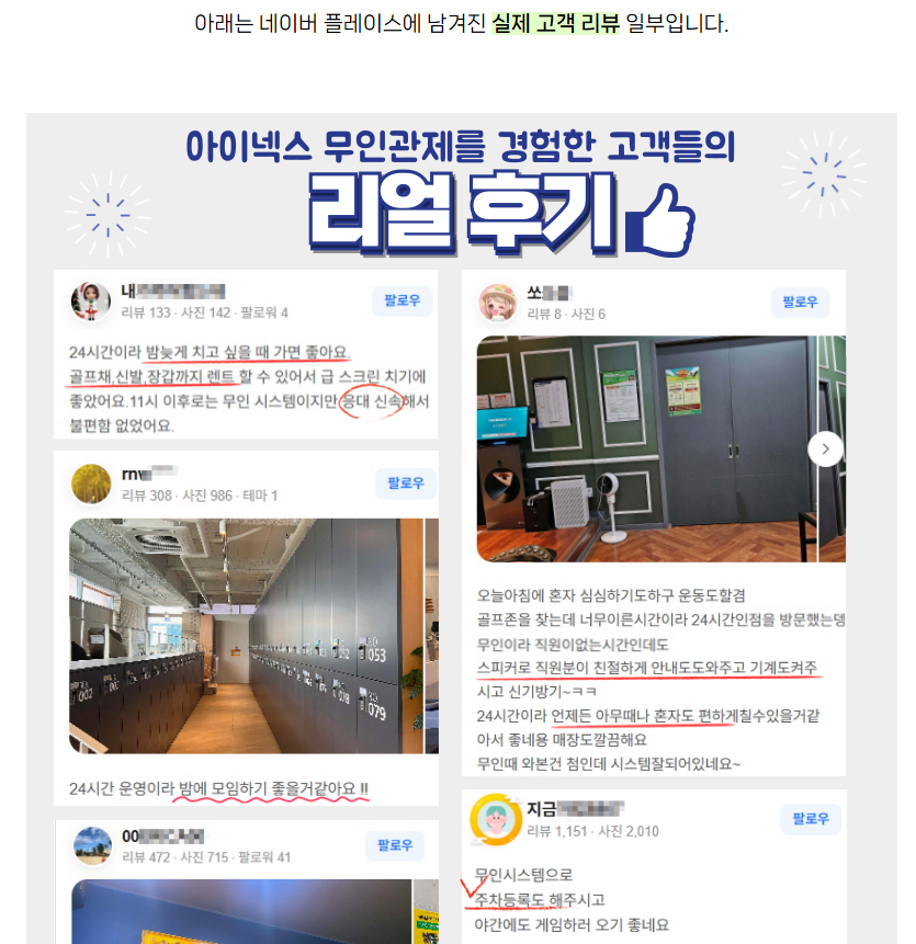 스크린골프 24시간 무인관제 운영, 실제 고객 후기